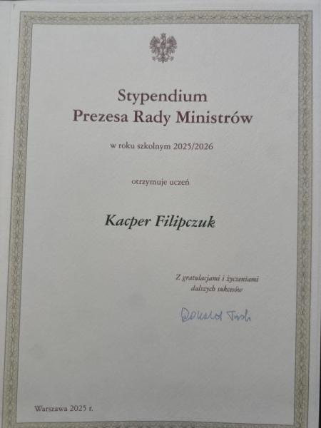 W dniu 12 lutego 2026 roku w Urzędzie Wojewódzkim w Lublinie odbyła się uroczystość wręczenia dyplomów stypendystom Prezesa Rady Ministrów. Miło nam poinformować, że do grona 235 najlepszych uczniów szkół ponadpodstawowych województwa lubelskiego należy uczeń Liceum Ogólnokształcącego w Horodle – Kacper Filipczuk.
